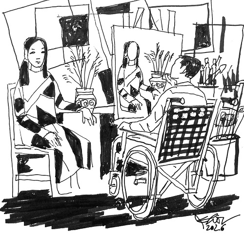 - Cô... cũng là họa sĩ ạ - Cô gái trẻ hỏi, vẻ e thẹn.